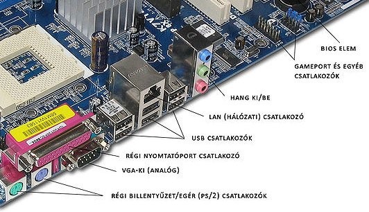 • régebben: 1 db párhuzamos nyomtatóport, 1 vagy 2 db soros port